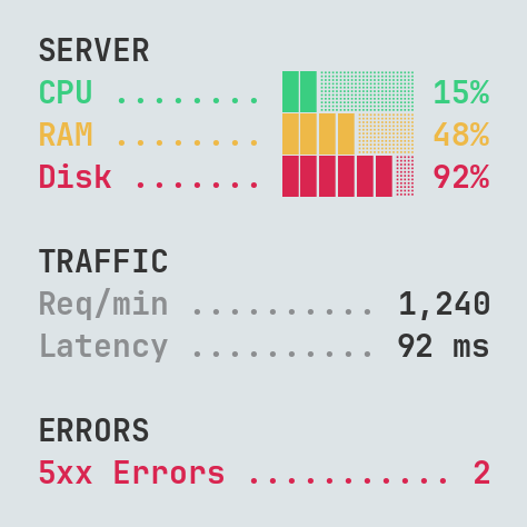 Create a simple JSON endpoint that returns your metrics as key–value pairs.