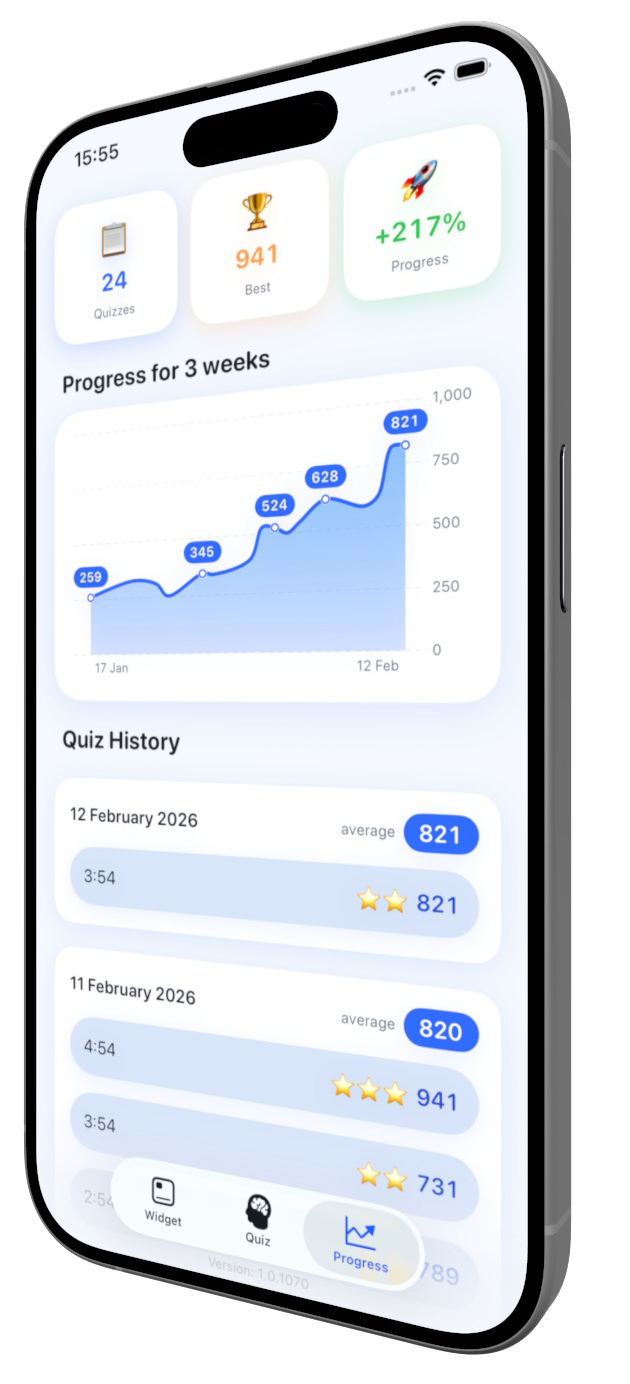 The widget builds passive recall. Quizzes lock it in.